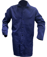 Bata. Confeccionada con textil Nomex, cierre de botón de melamina al frente y puños. 2 bolsas frontales y aperturas laterales apra acceso a bolsas de pantalón. Toda la prenda es cosida con hilo de aramida.